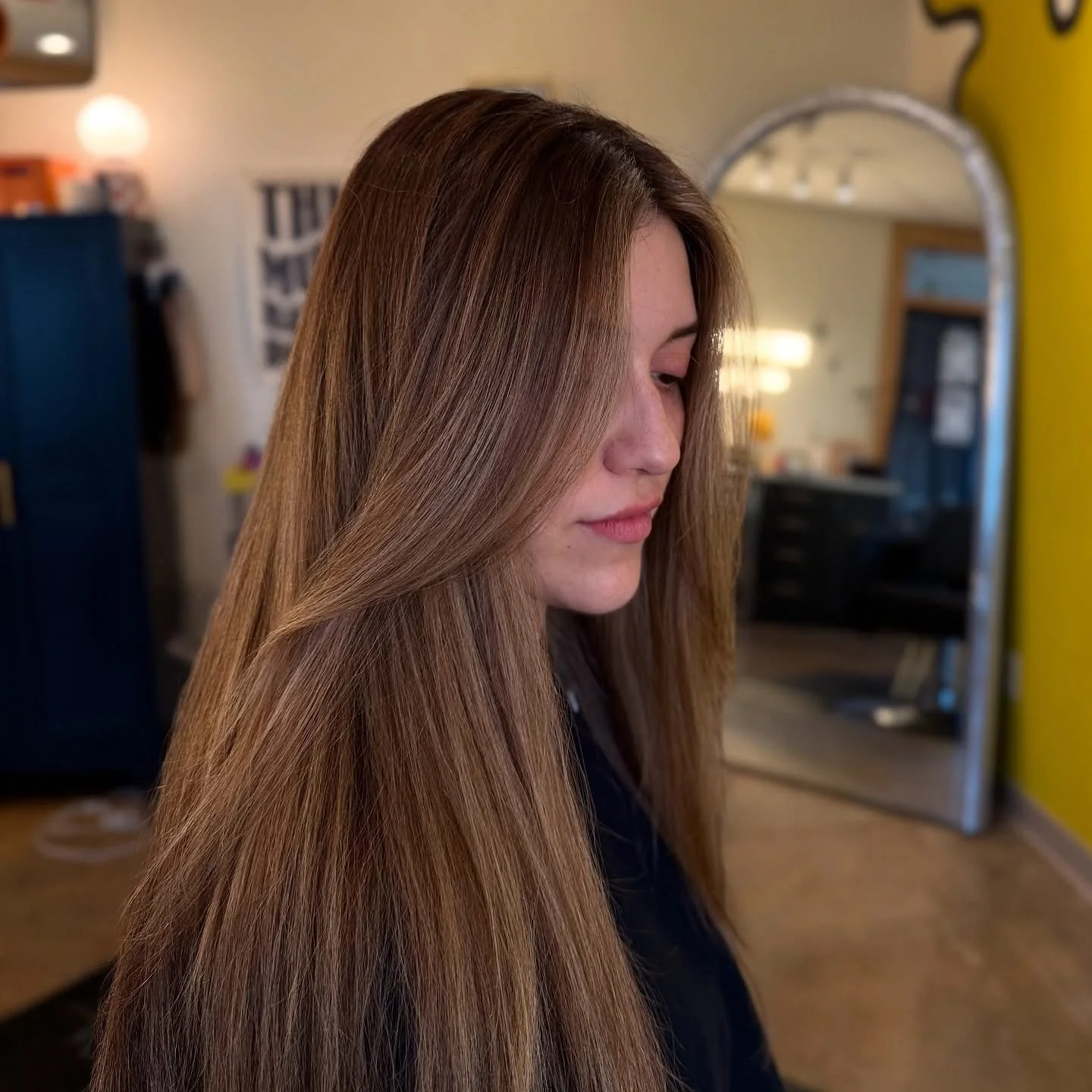 This technique focuses on soft blending, strategic brightness, and natural depth, creating color that grows out gracefully and fits into real life. Each lived in color service is customized to your natural base, skin tone, and maintenance preferences.